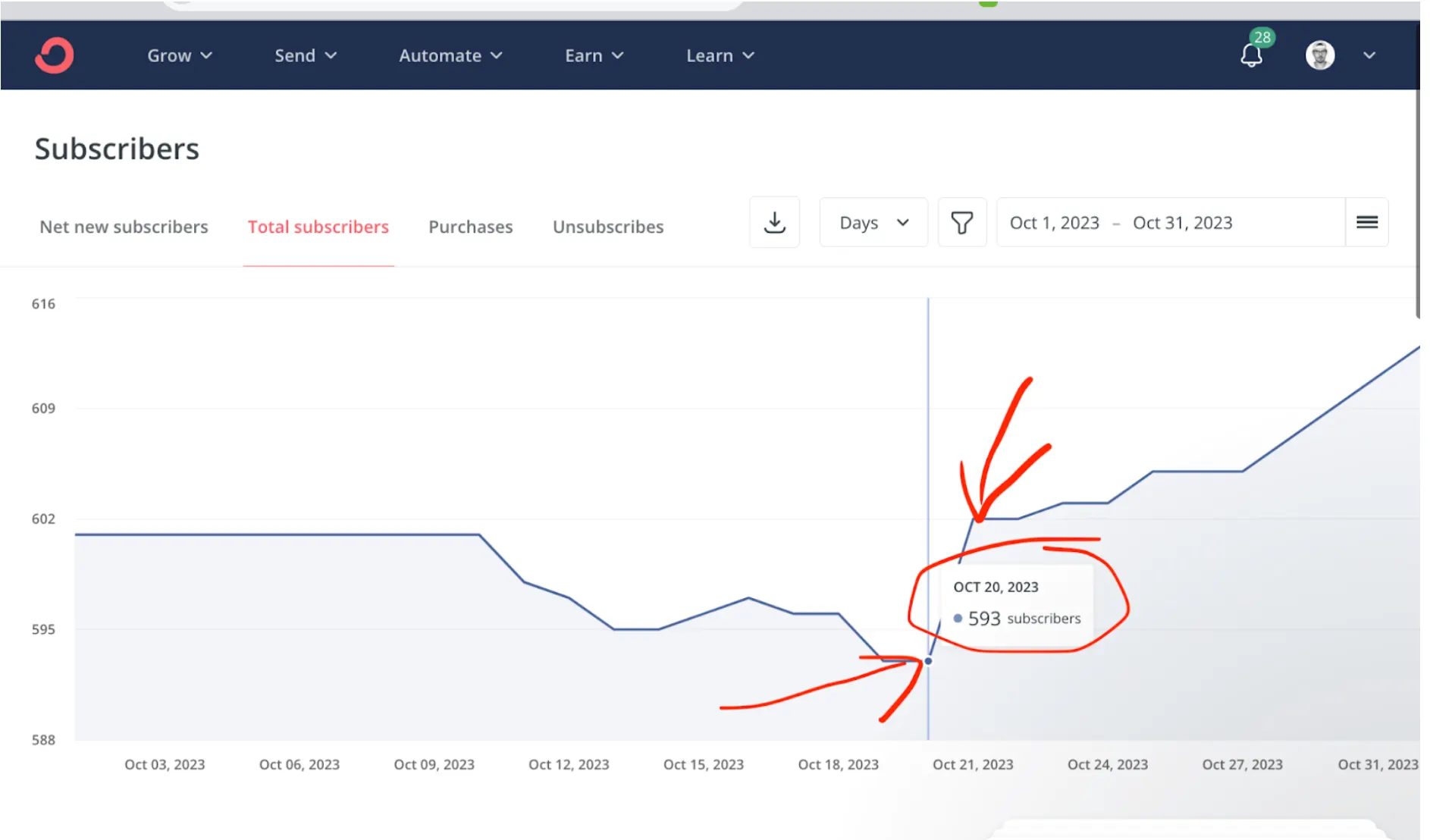 Total subscribers before: 593
