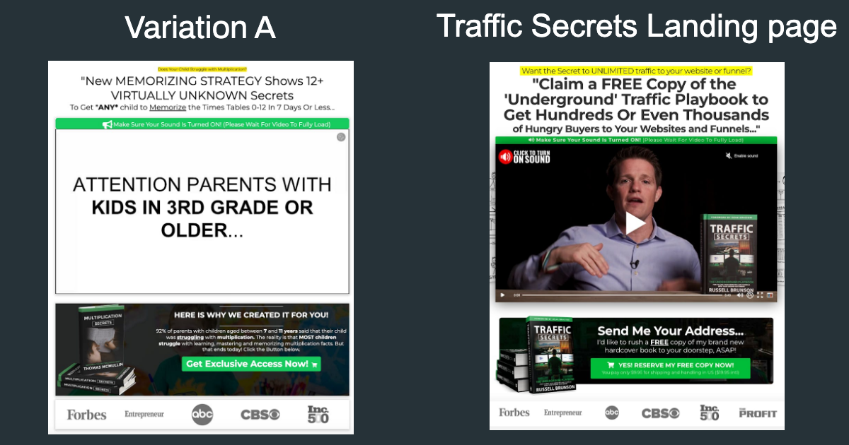 For the A/B split test, I collaborated with another funnel builder who designed landing page variation A, which I may refer to as the "original" variation.