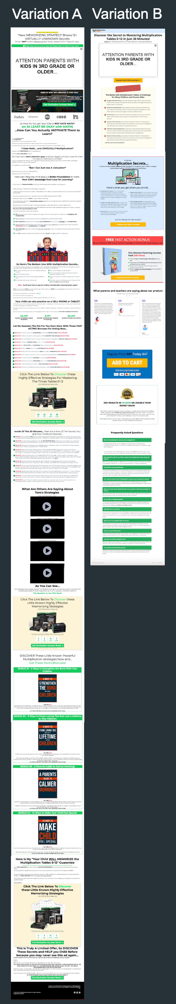 This landing page used to be Multiplicationsecrets.com, but since it lost to my variation, it has been unpublished. However, I have permission to use it as a case study example.