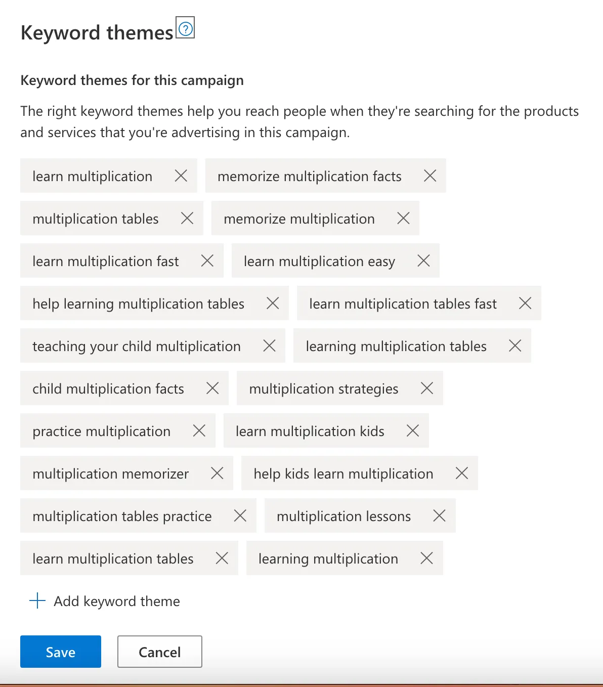 Keyword Themes: Optimized by cutting irrelevant themes for better targeting
